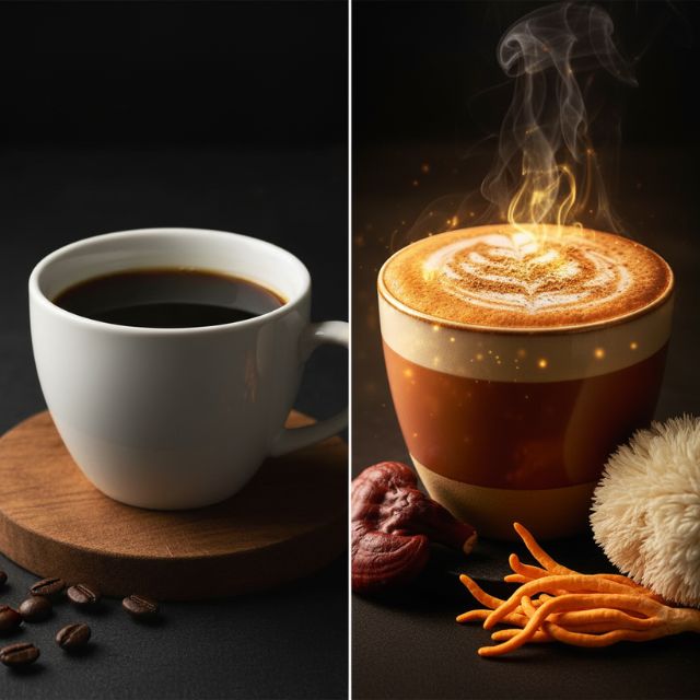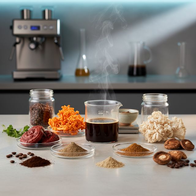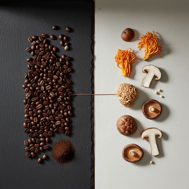 Chez Kafungi, nous avons combiné : La chaleur et l'arôme authentique du café, La pureté du matcha japonais, La puissance des champignons médicinaux (Reishi, Cordyceps, Lion's Mane, King Trumpet, Turkey Tail, Shiitake). Résultat : une boisson saine, biologique et traçable qui renforce à la fois le corps et l'esprit, sans pic ni chutes d'énergie comme avec la caféine classique.